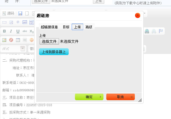 然后點下面黃色的“確定”就可以了。這就完成了附件的上傳工作,用戶可以從文章中下載這個文件了。