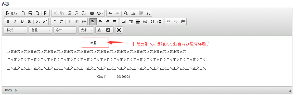 5、 輸入正文 標題要輸入(如果不輸入標題省網就沒有標題了。)