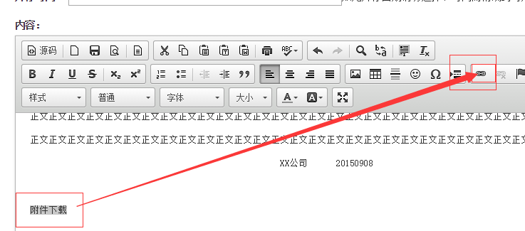先在內容里輸入“附件下載”或“下載”選中它。然后。